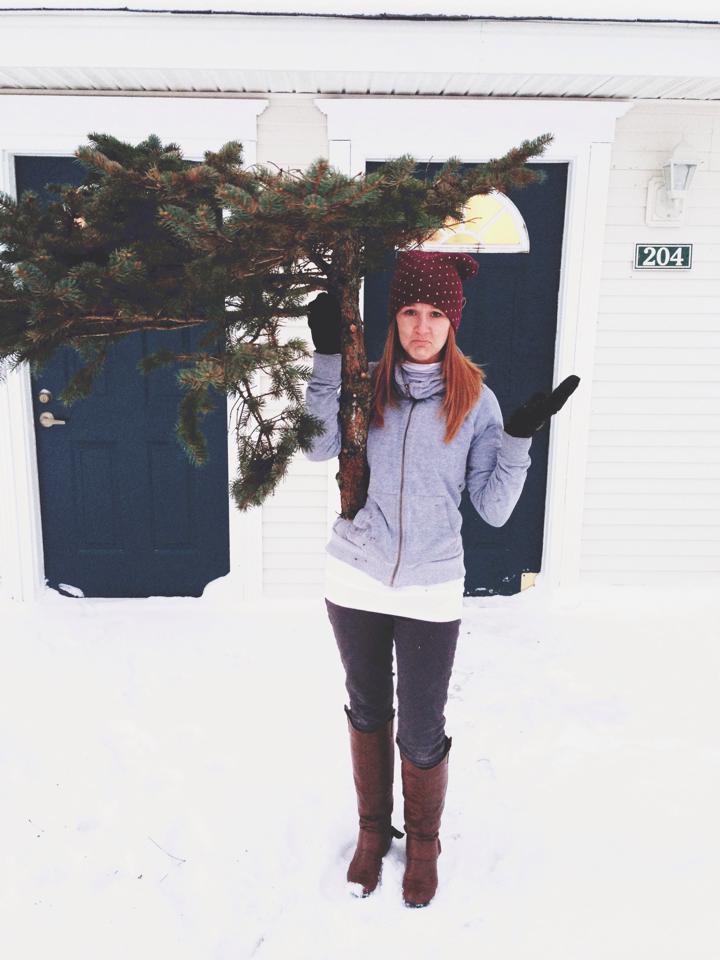 a blue spruce + a wet dog
